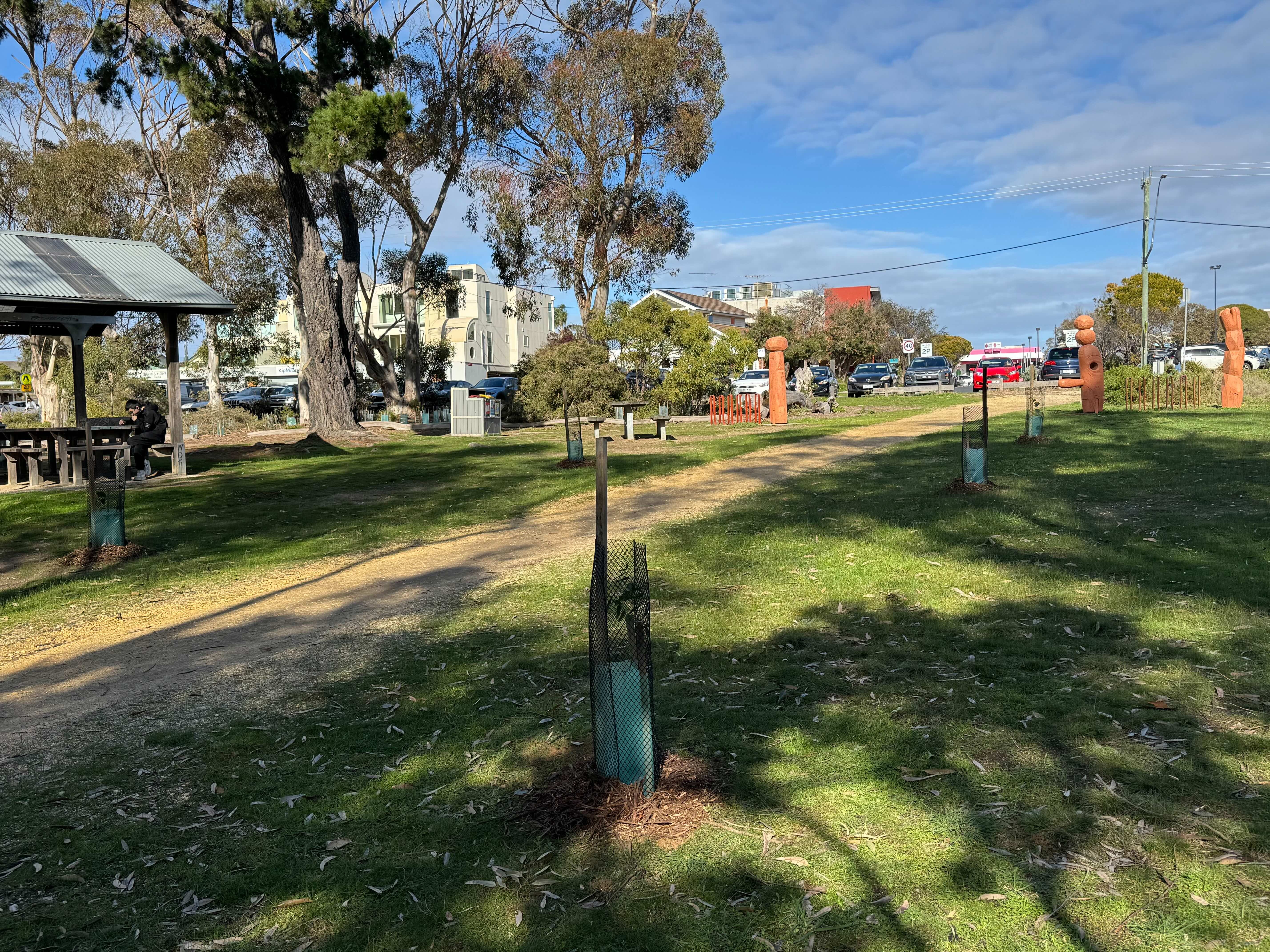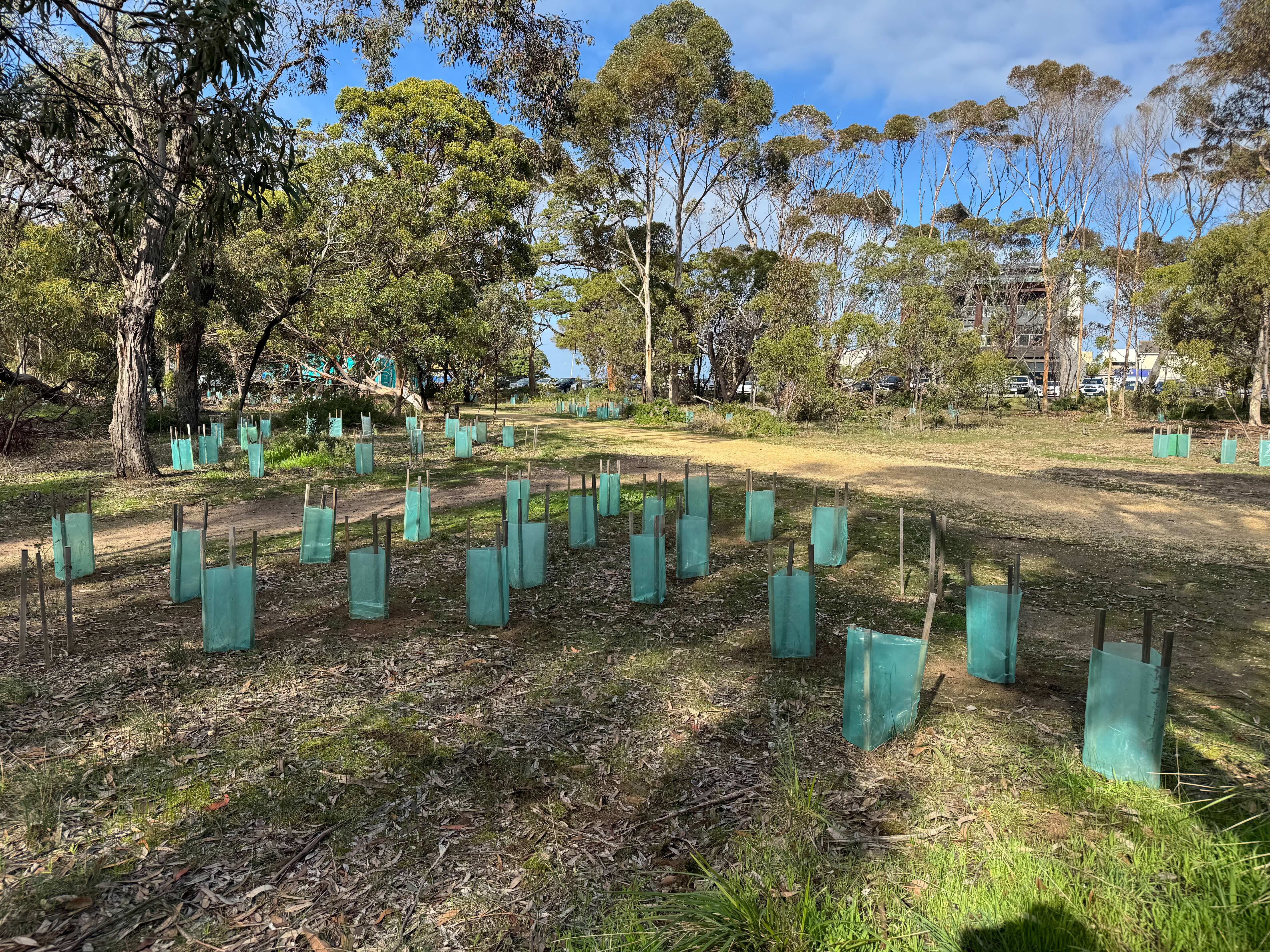 This month Friends of Taylor Park spent the morning planting 100 native grasses and 5 Bellarine Yellow Gums in the park. The grasses had been raised from seed collected in the park. Bellarine Yellow Gums are an endangered species indigenous to the area so it was fantastic to be able to plant them in the park.