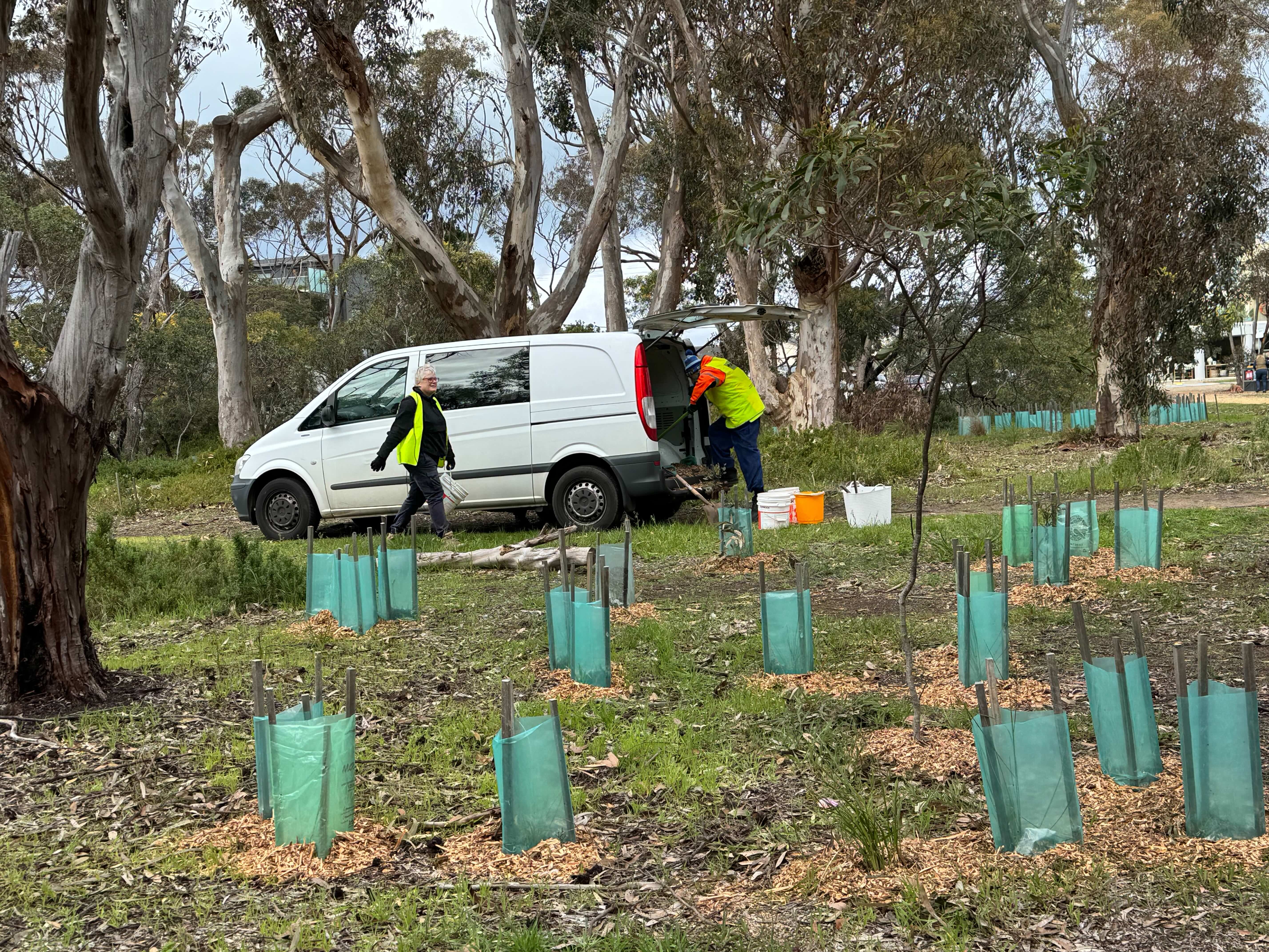 A small group of FOTP gathered for the monthly working bee in Taylor Park on Saturday 13th September. We spent the morning placing mulch around recently planted grasses in preparation for the approaching dry hot Summer.